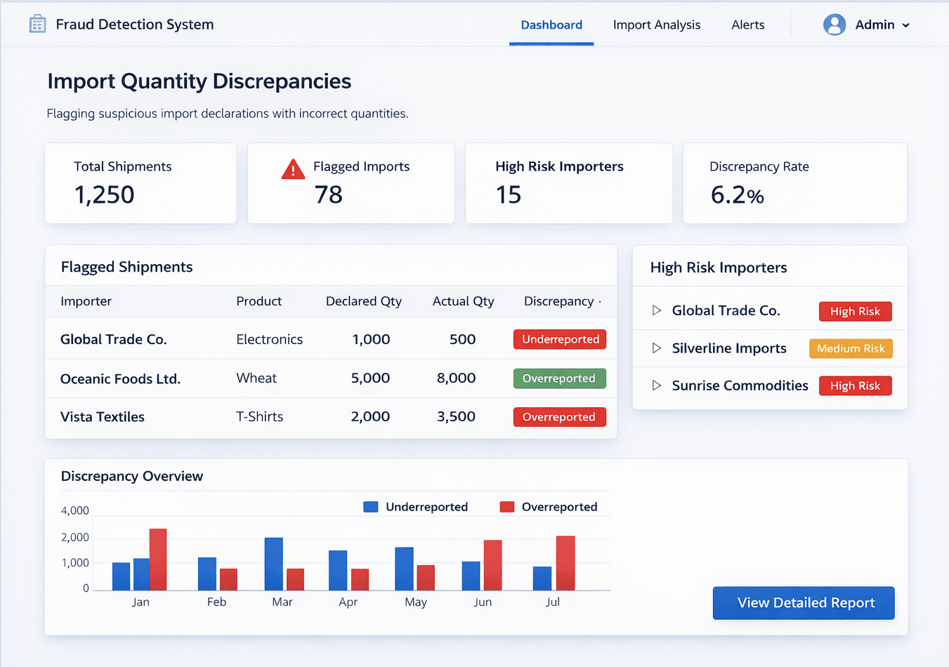 - Signale les valeurs aberrantes : Détecte automatiquement les commerçants déclarant des importations dépassant largement la demande prévue